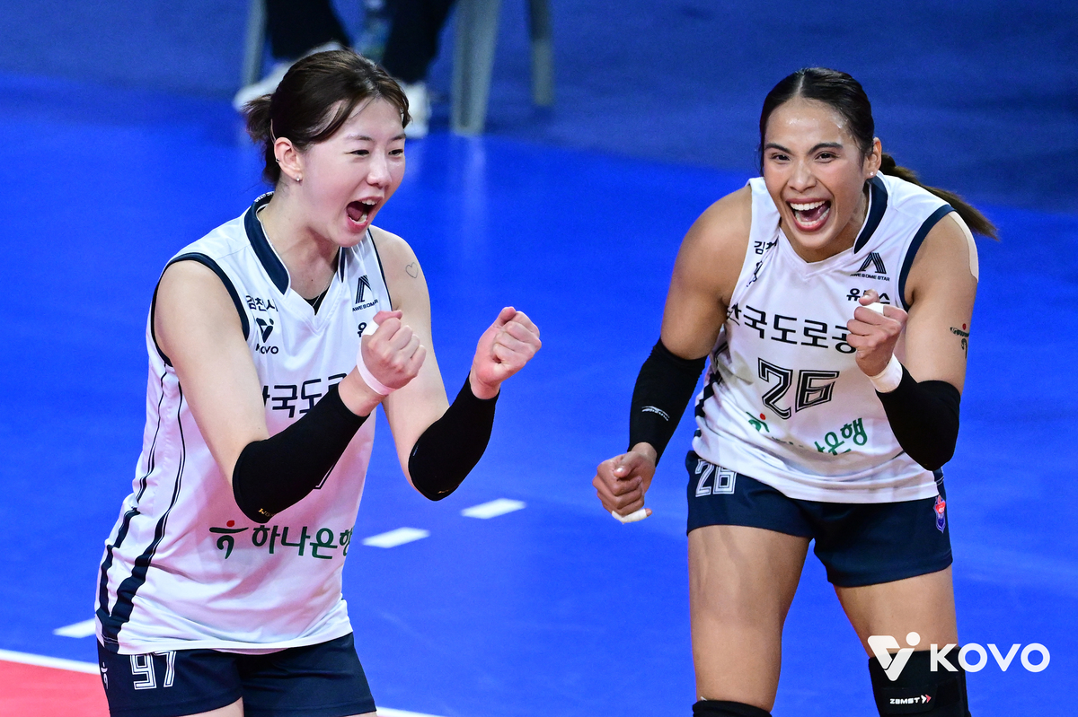 [화성=남정훈 기자] 이보다 더 완벽할 수 있을까. 도로공사가 시즌 전 ‘양강’으로 평가받았던 IBK기업은행을 상대로 셧아웃 승리로 거두며 파죽의 8연승을 달렸다. 동시에 IBK기업은행을 6연패의 늪으로 밀어넣었다. 도로공사는 19일 화성종합체육관에서 열린 2025~2026 V리그 여자부 2라운드 IBK기업은행과의 원정 경기에서 모마(17점)-강소휘(16점)- 타나차(14점)로 이어지는 여자부 최강의 ‘삼각편대’의 막강 화력과 한 수 위의 경기 운영을 선보이며 세트 스코어 3-0(25-22 25-18 25-18) 완승을 거뒀다.