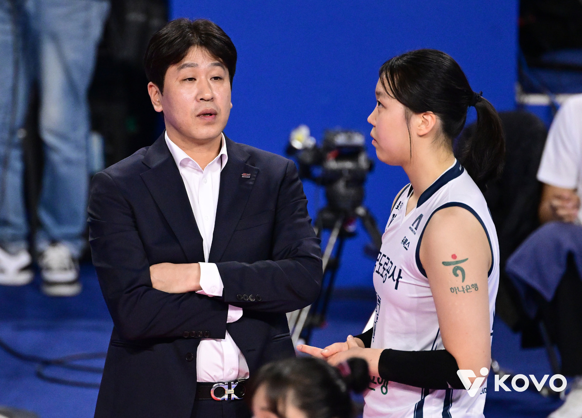 각 포지션에서 선발로 나설 베스트7이 안정되어 있는 도로공사와 경기 전 연습 과정까지 지켜봐야만 선발 라인업을 정할 수 있는 IBK기업은행의 차이가 극명하게 드러난 한 판이었다. 경기 전 만난 IBK기업은행 김호철 감독은 ‘선발 아웃사이드 히터 두 자리가 누구냐’라는 질문에 “후~” 한 숨을 쉰 뒤 “상대 아포짓 모마를 막으려면 알리야 킨켈라를 써야하지만, 리시브 불안과 100%가 아닌 몸 상태 때문에 쉽지 않다. 경기 전 연습 때 공격하는 모습을 보고 결정하겠다”라고 말했다. 김호철 감독의 선택은 육서영, 황민경 선발, 킨켈라 벤치였다. 1m74의 단신이라 공격력은 무디지만, 리시브나 수비에서 팀에 도움을 줄 수 있는 황민경으로 경기의 안정성을 강화하겠다는 의도였다.
