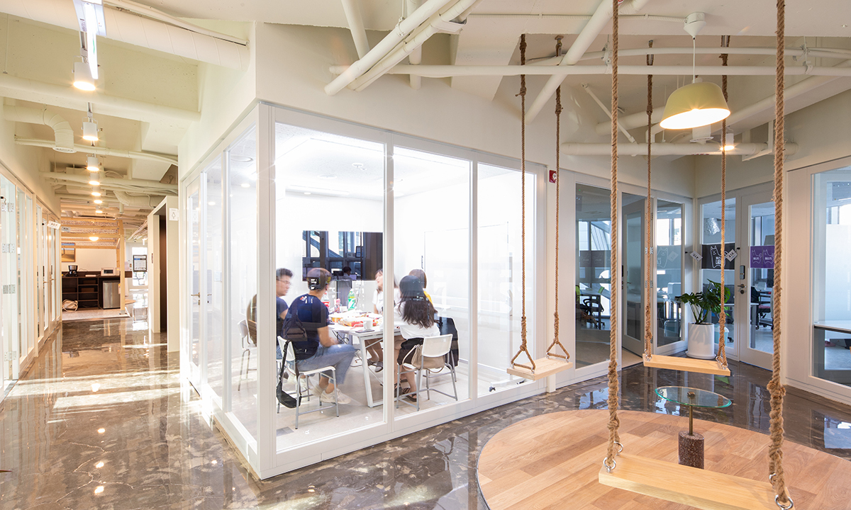건물 내 3∼4층에는 입주 기업이 이용할 수 있는 2인실부터 10인실까지 다양한 크기의 사무 공간이 있다. 서울소셜벤처허브 제공 ◆현장에서 돋보이는 소셜벤처 소셜벤처허브의 지원을 받는 기업들은 업종이 다양하다. 종이로 가구를 만드는 ‘페이퍼팝’, 공기주입식 조끼를 통해 발달장애인의 안정에 도움을 주는 ‘돌봄드림’, 당뇨·고혈압 환자용 맞춤 건강식을 제공하는 ‘잇마플’, 저소득층 아동에게 식사를 지원하는 ‘나눔비타민’, 의료용품·보조기기와 정보통신기술(ICT)을 결합해 장애인을 돕는 ‘에이블테크’ 등이 대표적이다.