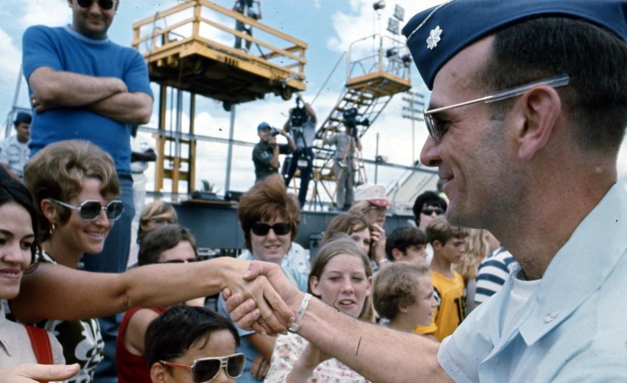 1973년 3월 베트남에서의 5년 넘는 포로 생활을 마치고 풀려난 미 공군 조종사 로버트 스텀 중령(오른쪽)이 캘리포니아주 트래비스 공군 기지에 도착해 포로들의 귀환을 환영하는 시민들과 인사를 나누고 있다. 미 전쟁부 제공 하지만 이제 68세의 노인이 된 딸 로리는 지금도 사진을 보며 아버지를 떠올린다고 한다. AP 통신과의 인터뷰에서 로리는 “아버지의 귀환은 최고의 선물이었다”며 “아버지와 재회하던 순간 느낀 그 강렬한 감정을 결코 잊을 수 없다”고 말했다. 김태훈 논설위원 af103@segye.com