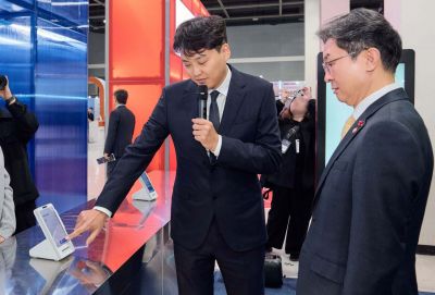 이 위원장은 이날 박상진 대표와 함께 네이버페이 부스에 방문해 커넥트 기능을 체험했다. 결제 후 리뷰·쿠폰 다운로드 등 온라인에서만 가능했던 기능을 오프라인 매장에서 즉시 경험하도록 돕는 게 커넥트의 특징이다. 이 위원장도 직접 단말기를 켜보며 이를 경험했다.