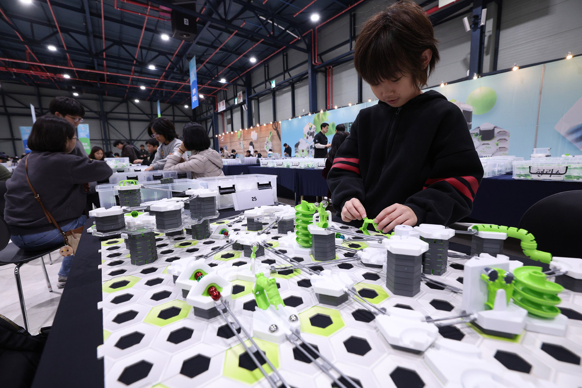 한강로 사진관은 세계일보 사진부 기자들이 만드는 코너입니다. 우리가 세상을 보는 방법은 다양합니다. 눈으로도 보고 귀로도 듣습니다. 간혹 온몸으로 느끼기도 합니다. 사진기자들은 매일매일 카메라로 세상을 봅니다. 취재현장 모든 걸 다 담을 순 없지만 의미 있는 걸 담으려고 합니다. 그리고 조금은 사심이 담긴 시선으로 셔터를 누릅니다. 다양한 시선의 사진들을 엮어 사진관을 꾸미겠습니다. 30일 서울 강남구 SETEC(세텍)에서 열린 그래비트랙스 페스타를 찾은 시민들이 그래비트랙스를 만들고 있다. 그래비트랙스는 구슬의 이동경로를 설계·조립하는 과학 실험형 완구다. 그래비트랙스 페스타에는 대형트랙, 미션 챌린지, 보드게임 체험, 스피드 규빙 등 다양한 체험과 부대 행사가 함께 마련됐다.