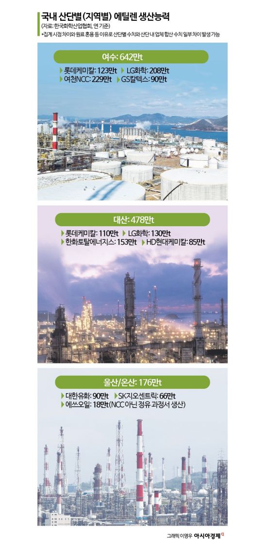 여수 지역 NCC 생산능력은 롯데케미칼 123만t, LG화학 208만t, 여천NCC 229만t, GS칼텍스 90만t 등 총 642만t으로 국내 최대 규모다. 지역 관계자는 "정부 구조재편이 제대로 작동하려면 산단 내 다른 업체들도 어느 정도 책임을 나눠야 한다"고 말했다.
