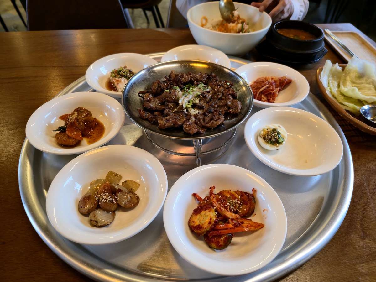 안덕면 창천리 달팽이식당 정식. ◆자청비 설화 만나는 고배기동산 삼나무숲 여행은 때로는 맛으로 기억된다. 오후 1시 넘어 안덕계곡에서 차로 5분 거리 안덕면 창천리 현지인 맛집 달팽이식당으로 들어서자 거의 만석이다. 메뉴는 1만5000원짜리 달팽이정식 단 한 가지. 청국장, 직화 석쇠 불고기, 보리밥, 밑반찬으로 구성되며 어머니가 차려주는 집밥 느낌의 정갈한 한상으로 나온다. 직접 농사지은 콩으로 만든 청국장이 구수해 밥에 쓱쓱 비며 먹으면 순식간에 한 그릇이 빈다. 무엇보다 오이, 두부, 계란장 등 반찬의 간이 자극적이지 않아 제주 청정 자연을 먹는 느낌이다. 불고기는 불맛이 제대로 살아있다. 오전 11시에 문을 열며 마지막 주문은 오후 3시다.