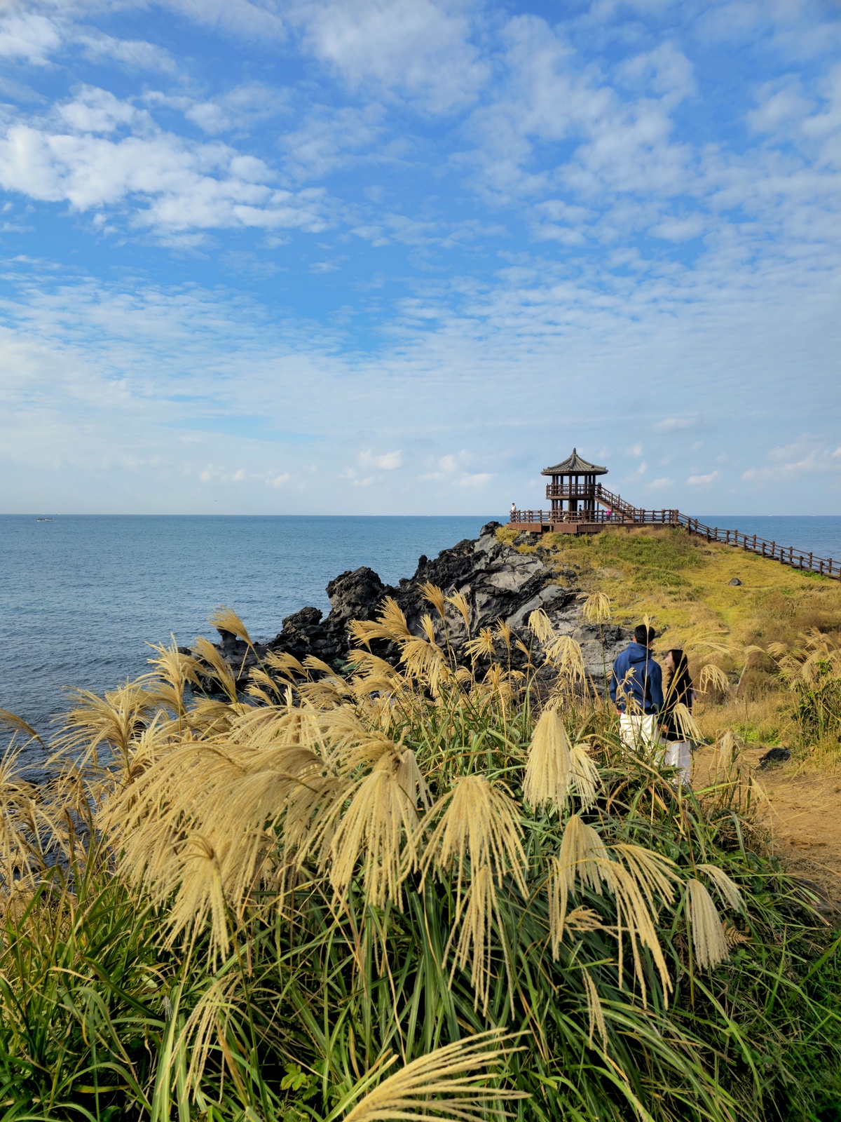닭머르해안 억새. 오솔길로 들어서자 햇빛을 받아 은빛으로 반짝이는 억새 바다 풍경에 탄성이 터진다. 저 멀리 바다로 향해 뻗어나간 능선 끝에 운치 있는 정자를 품은 전망대와 푸른 바다까지 어우러지니 만추를 떠나보내기에 이보다 좋은 곳이 있을까. 억새밭을 느리게 걷는다. 사각사각 소리 내며 억새 사이를 파고드는 바람의 맥박. 갯바위를 때리는 파도의 노래. 눈을 감고 숨을 쉬니 제주 청정 자연이 폐 속 깊은 곳까지 전달된다.