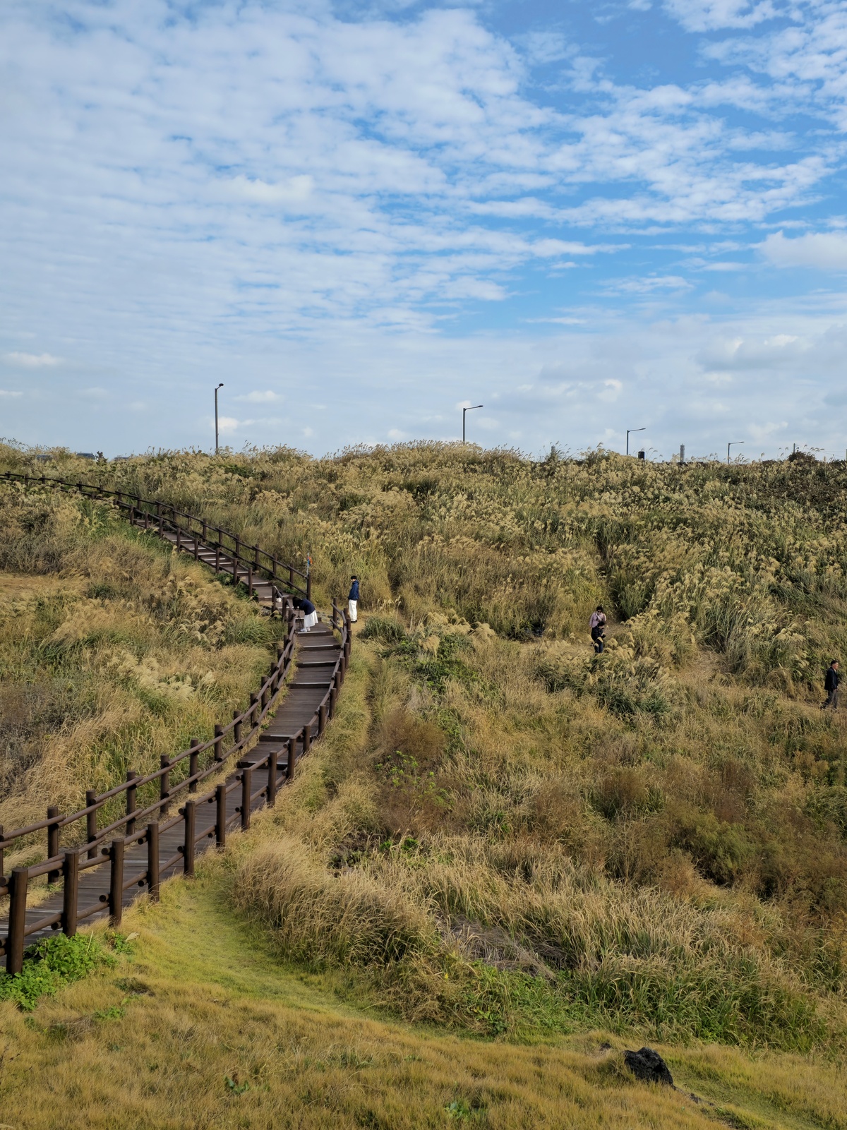 닭머르해안. 은빛으로 출렁댄다. 마지막 가을빛 머금은 억새들 만추의 잔향 흩뿌리며. 억새밭 사이로 불어오는 거센 바람의 스산한 숨소리는 옷깃을 여미게 만들고. 붉은 태양은 하루가 다르게 서둘러 바다로 내려앉으니 제주도 이제 늦가을과 헤어질 때. 푸른 바다, 억새, 바람이 어우러진 닭머르해안길을 걸으며 계절의 한 페이지를 넘긴다.