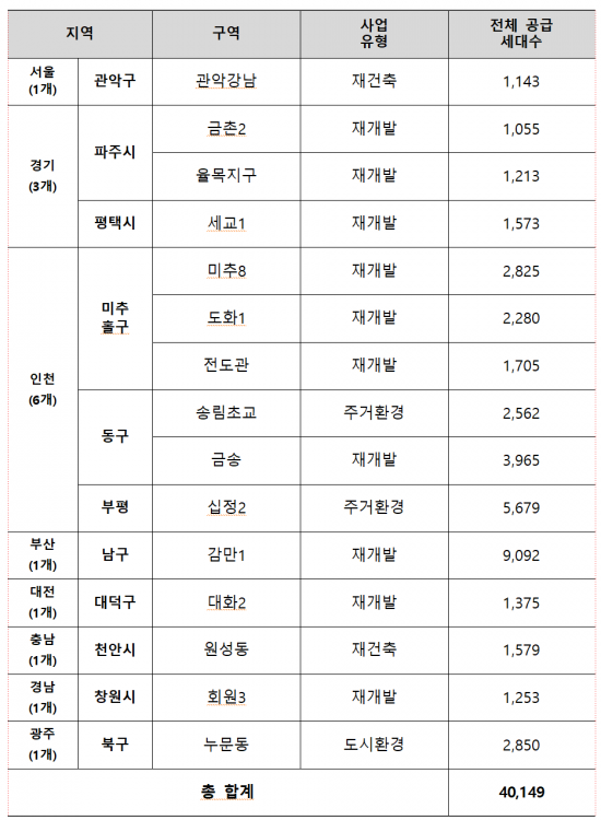 국토부는 이번 제도 개선으로 전국 약 4만가구 규모의 연계형 정비사업 추진에 속도가 붙을 것으로 보고 있다. 조민우 국토부 주택정비과장은 "도심 내 양질의 주택이 신속하게 공급되도록 주택공급 확대방안(9·7대책)에 포함된 정비사업 제도 종합 개편을 차질 없이 추진해 나가겠다"고 말했다.