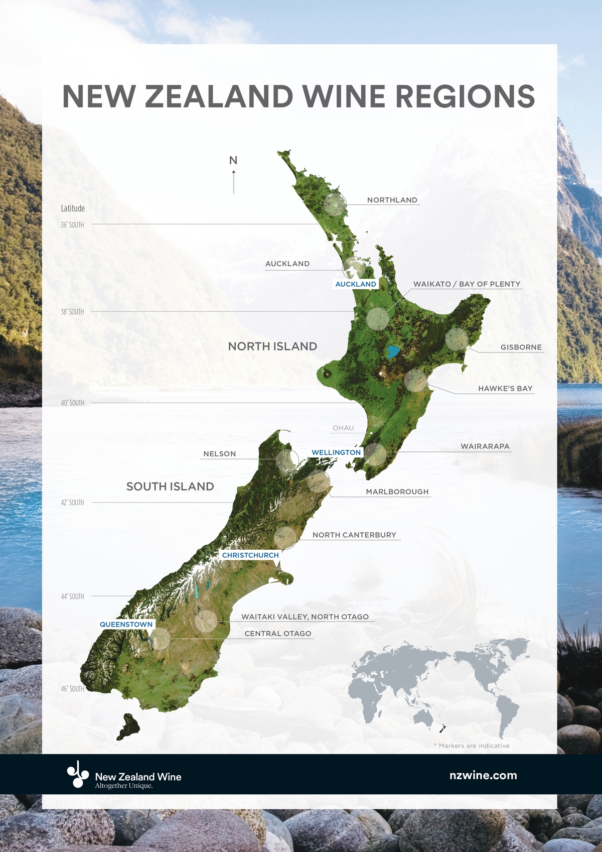 뉴질랜드 와인 산지. 뉴질랜드와인협회 ◆루아르 vs 말보로 루아르의 대표 소비뇽블랑 산지 상세르와 푸이퓌메는 자몽, 풋사과, 복숭아, 허브, 흰꽃, 풍성한 미네랄, 플린트(부싯돌), 스모키 노트가 두드러집니다. 보통 스틸탱크에서 발효하지만 대형 푸드르(1000ℓ이상 대형 오크통), 여러해 사용한 중성 배럴에서도 발효하고 일부만 새오크에서 발효하기도 합니다. 특히 루아르는 대부분 숙성과정에서 효모앙금과 숙성하는 쉬르리(Surlees)을 통해 부드러운 텍스처와 복합미를 만듭니다.