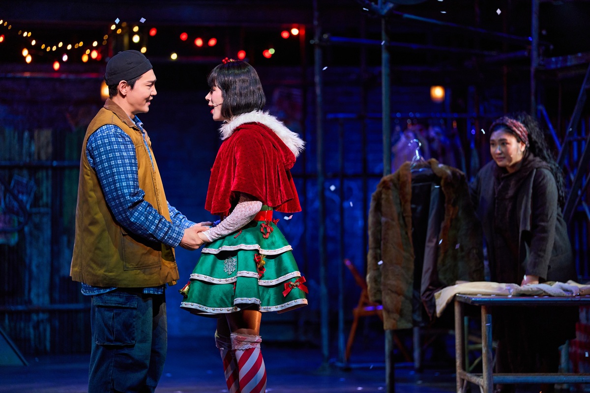 젊은 예술가들의 치열한 삶과 사랑을 무대에 올린 뮤지컬 ‘렌트’. “사랑을, 사랑을 기억해야 해요. 사랑은 하늘이 주신 선물이기에, 사랑을 나누고, 사랑을 받고, 다시 사랑을 나눠요. 당신의 삶을 사랑으로 재어 보아요”라고 노래한다. 신시컴퍼니 제공 1996년 1월, 뉴욕의 작은 소극장에서 초연된 이 작품이 대성공을 거두며 긴 생명력을 지닌 명작이 된 첫째 이유는 역시 음악이다. ‘시즌즈 오브 러브’부터 ‘원 송 글로리’, ‘투데이 4 유’, ‘산타 페’, ‘아윌 커버 유’, 그리고 ‘라 비 보엠’까지 OST 발매 앨범 기준 총 46곡이 쉼 없이 송스루로 이어진다. 록을 중심으로 리듬 앤드 블루스, 탱고, 발라드, 가스펠까지 장르를 넘나드는 이 음악들은 극의 호흡이자 인물의 감정선으로 작동한다. 무대 전면 왼편에 자리한 5인조 밴드는 이번 시즌에서도 변함없이 록 뮤지컬의 정수를 객석에 선사한다. 지난 9일 공연에서 가장 먼저 객석을 압도한 장면은 김수하가 미미로 등장해서 부르는 ‘라이트 마이 캔들’이었다. 영국 웨스트엔드에서 ‘미스 사이공’의 ‘킴’으로 활약하다 ‘스웨그에이지: 외쳐, 조선!’(2019)으로 국내 뮤지컬계에 혜성처럼 등장한 김수하는 2020년 ‘렌트’에서 두번째로 국내 관객을 만났다. 그때만 해도 큰 옷을 입은 느낌이었는데, 이번 무대에선 한층 깊어진 감정과 더욱 단단해진 노래, 그리고 성숙한 춤과 연기로 미미라는 캐릭터를 제대로 보여줬다. 5년의 시간을 배우로서 고스란히 품어 키워낸 성장이 눈에 보이는 무대였다.