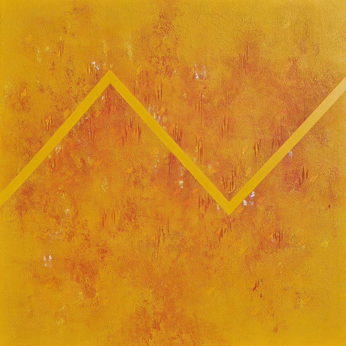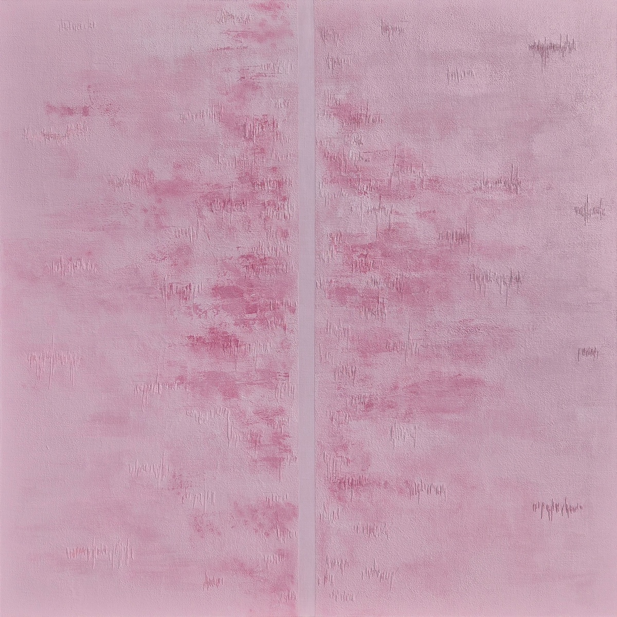 ‘ECHO:메아리展’ 포스터. 이번 전시는 이산가족의 단절을 하나의 ‘장애물’로, 그 너머에 닿고자 하는 간절한 소망을 ‘메아리’로 표현한다. 메아리는 닿지 못한 목소리이자 그리움의 올림으로, 작품을 통해 단절된 현실 속에서도 인간적 연대와 공감의 가능성을 탐구한다. 주말에는 관객 참여 프로그램을 운영한다. 회차 별로 25명 내외 참가자들이 편지 작성 → 종이비행기 날리기 → 강풍기에 의해 되돌아옴 → 소감 기록 후 전시장 벽에 부착한다. 분단과 이산가족의 아픔을 ‘메아리’와 ‘장애물’로 표현한다. 형식은 회화·설치·영상·퍼포먼스를 유기적으로 연결해 관객이 직접 체험하며 주제에 공감하도록 유도한다. 회화 메아리(Echo)는 단절된 교류의 감각을 시각적 기호로 풀어낸다. 화면 중앙의 경계선은 보이지 않는 장벽을 상징하며, 좌우에는 메아리의 음파나 심박수와 같은 패턴을 바느질로 새겨 넣었다. 이는 소통의 시도가 되돌아오는 상황을 은유하며, 뒷면의 연결된 실은 보이지 않는 마음의 연대를 드러낸다. 색채는 계절과 지형을 상징하며, 검은색은 과거 짧았던 만남의 기록을 환기한다. 이를 통해 회화는 단순한 시각적 이미지가 아니라, 시간·공간·감정이 교차하는 다층적 장으로 확장된다.