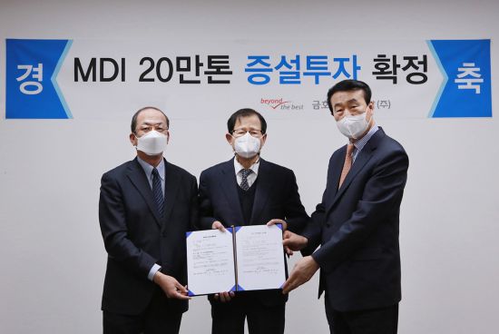 온용현 금호미쓰이화학 사장은 "이번 디보틀네킹 투자는 기존 설비를 최대한 활용해 투자 효율을 극대화하는 전략적 프로젝트"라며 "계획된 일정과 목표 수익성을 달성해 글로벌 MDI 제조사들과 경쟁할 수 있는 기반을 더욱 공고히 하겠다"고 말했다.