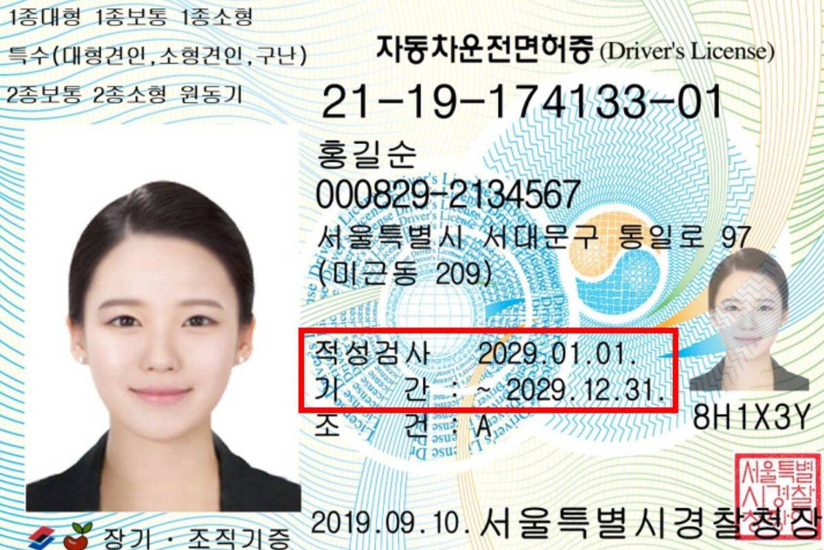 올해 운전면허증 갱신 대상자인지 알기 위해 운전면허증에 적힌 적성검사 기간이 2025년으로 표시돼 있는지 확인하면 된다.