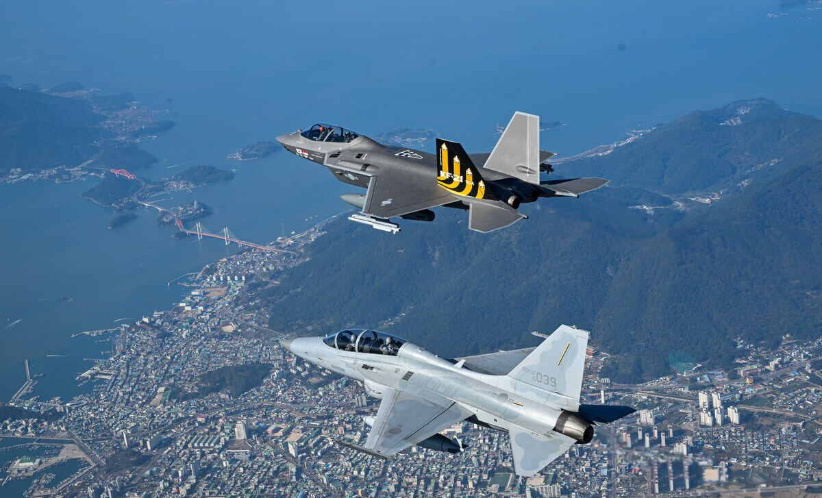 국산 FA-50 경공격기와 KF-21 시제기가 비행을 하고 있다. 세계일보 자료사진 KF-21은 사정이 다소 다르다. KF-21은 독일 딜 디펜스가 제작한 아이리스-티(IRIS-T) 단거리 공대공미사일과 유럽 MBDA가 만드는 미티어 장거리 공대공미사일을 장착한다. 유럽산 항공무장으로 최소 수량을 확보하고, 나머지는 국산 무장으로 채우는 방식이다.