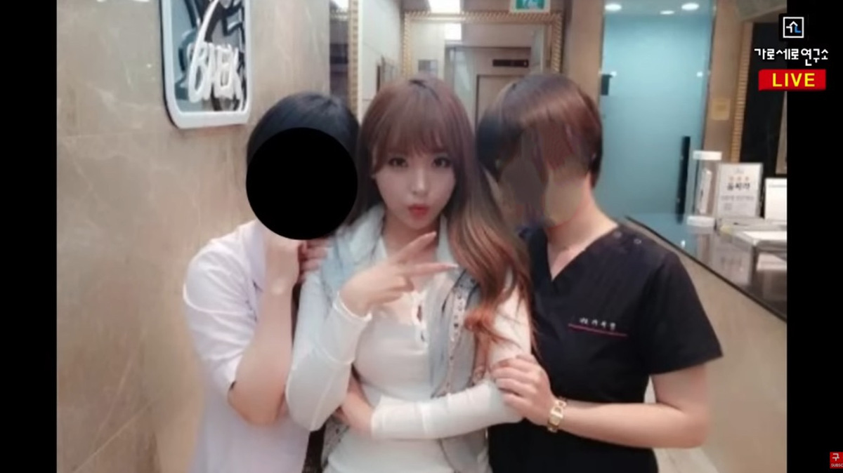 유튜브 채널 '가로세로연구소'가 홍진영과 '주사이모' 이 씨가 함께 찍었다고 공개한 사진. 유튜브 채널 '가로세로연구소' 영상 캡처 소속사는 “해당 사진은 홍진영이 ‘사랑의 배터리’ 이후 ‘부기맨’ 활동 당시 촬영된 것으로 파악하고 있다”라면서 “시점을 따져 보면 약 12년 전 한 병원에서 찍힌 사진으로 추정된다”고 말했다. 이어 “사진을 확인한 홍진영 본인 역시 촬영 시점이 너무 오래됐고, 함께 사진을 찍은 이 씨에 대해서도 전혀 기억이 나지 않는다고 밝혔다”고 전했다.