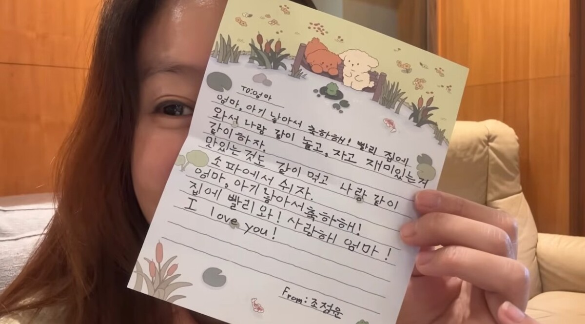 이시영의 첫째 아이가 선물한 편지. 유튜브 채널 '뿌시영' 영상 캡처 이시영은 “조리원에서 여러모로 신경을 써 줘서 있는 동안 너무 행복했다”면서 그간 첫째 아들이 선물로 준 편지를 공개해 뭉클함을 자아내기도 했다. 시청자들은 몸과 마음을 회복한 이시영이 아기와 함께 빠르게 일상으로 돌아올 수 있기를 바라며 댓글을 통해 “소식 궁금했는데 반갑다”, “악플은 신경 쓰지 마시길”, “출산 다시 한 번 축하드립니다” 등 응원의 메시지를 남겼다.