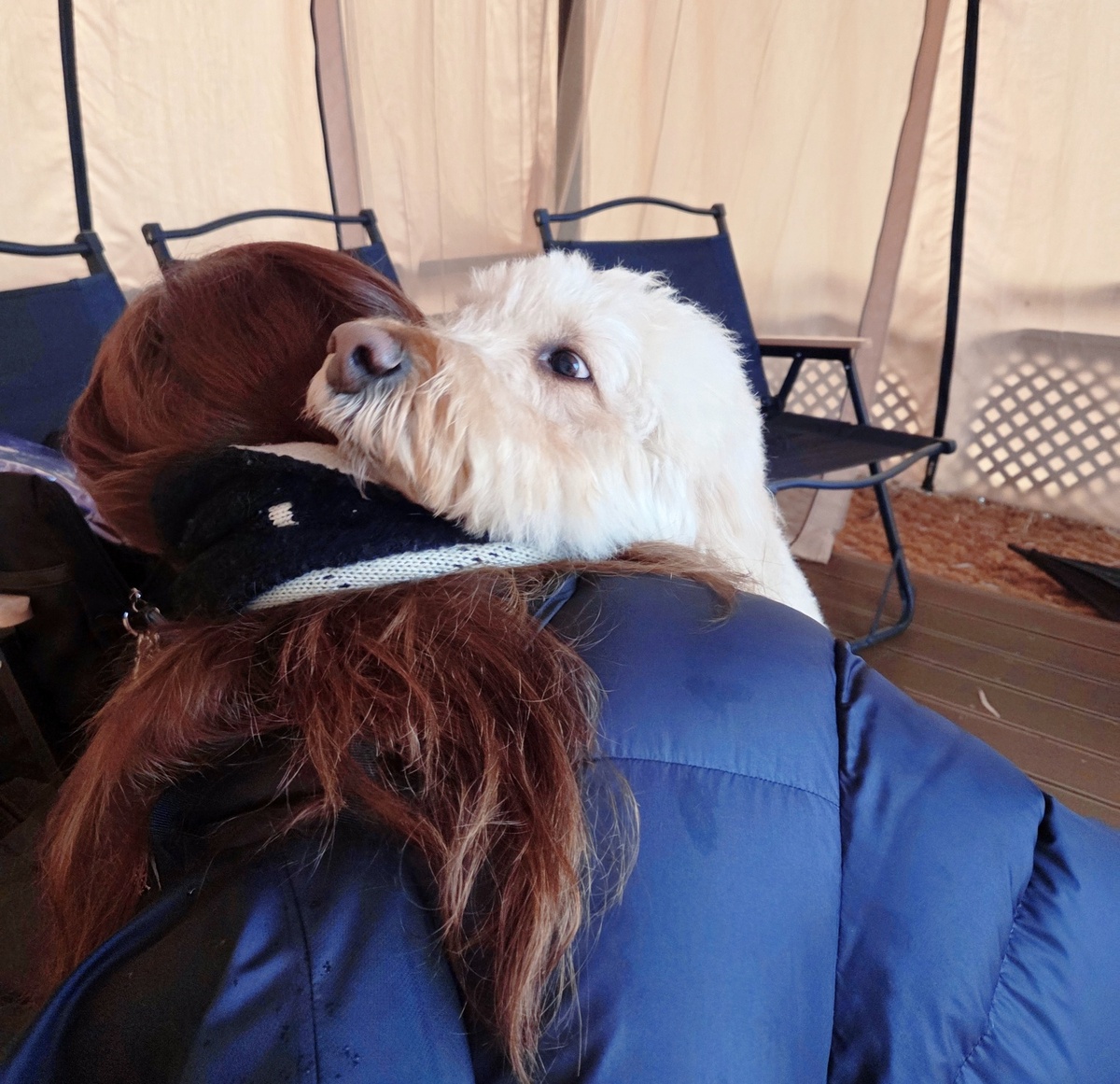 서울 마포구가 특별한 홍보대사를 선임했다. 생후 3개월부터 5년째 마포에서 살고 있는 골든두들(골든리트리버와 푸들 믹스견) 반려견 ‘바오’가 주인공. 지난 23일 마포반려견캠핑장에서 열린 위촉식에서 박강수 마포구청장으로부터 직접 임명 명찰을 받은 바오는 보호자이자 ‘대변인’ 김소이 씨를 통해 각오를 밝혔다. 앞발 한쪽을 들어서 얼굴을 향하는 충성 자세를 직접 취하면서.
