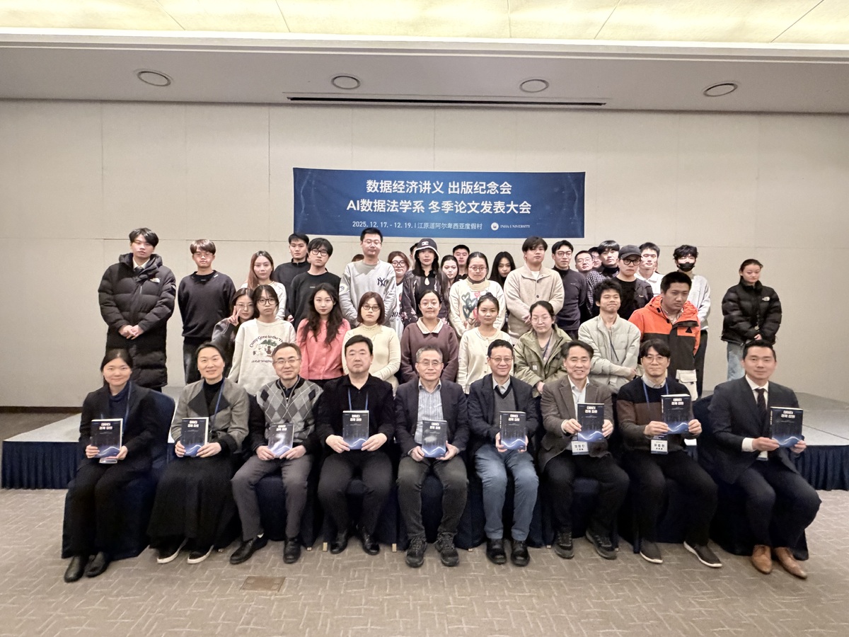 18일 강원도 평창 알펜시아 리조트에서 열린 ‘데이터 경제 강의’ 한국어판 출판기념회에서 주요 인사들이 기념사진을 찍고 있다. 왼쪽부터 정세은 박사(인하대 AI데이터법 센터), 김영순 교수(인하대 법학전문대학원), 정찬모 교수(인하대 AI데이터법학과), 김원오 교수(인하대 AI데이터법학과), 고부평(高富平) 교수(화동정법대, 인하대 AI데이터법학과 객원교수), 왕천(王?) 교수(화동정법대, 인하대 AI데이터법학과 객원교수), 정영진 교수(인하대 AI데이터법학과), 유동현(인하대 데이터사이언스학과), 이상우 교수(인하대 AI데이터법학과). 인하대 AI·데이터법센터 제공 『데이터 경제 강의』는 중국 데이터 법·정책 연구를 대표하는 역작으로, 데이터 요소 시장, 공공데이터 체계, 디지털 거버넌스, AI 시대의 법·정책 구조를 체계적으로 분석한 학술서이다. 이번 한국어판 출간은 단순한 번역을 넘어, 중국의 제도적 경험을 한국의 법제와 정책 환경 속에서 비교·검토할 수 있는 중요한 계기를 제공할 것으로 보인다. 역자 대표인 김원오 교수는 “AI 기본법 시행을 앞둔 한국 사회에서 데이터 경제를 어떻게 이해하고 제도적으로 뒷받침할 것인가는 매우 중요한 과제”라며 “『데이터 경제 강의』는 데이터와 인공지능을 기술의 문제가 아니라 법·정책·거버넌스의 문제로 통합적으로 바라보게 하는 중요한 길잡이”라고 강조했다. 또한 이번 출판이 “인하대와 화동정법대 간 지속적인 공동 연구와 신뢰의 결실”임을 밝혔다.