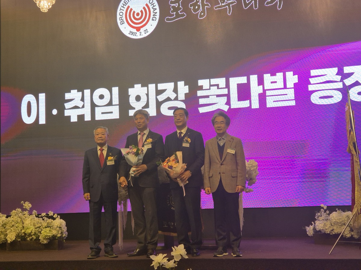 포항뿌리회 역대회장들이 기념촬영을 하고 있다. (왼쪽부터 이성환 초대회장, 류득곤 20대 신임회장, 김장수 19대 회장, 이동업 18대회장) 포항뿌리회 회원인 김일만 포항시의회 의장은 “포항뿌리회가 올 한해도 잘 이끌어갔고 다른 단체와 자매결연 등 유대와 연대도 깊다. 내년엔 철강, 신산업, 글로벌AI데이터센터 등이 들어설 만큼 큰 희망이 생긴다”라고 했다. '2025 포항사랑대상'의 주인공은 이신영 포항북부경찰서 경무과에 근무하는 경찰관이 선정됐다.