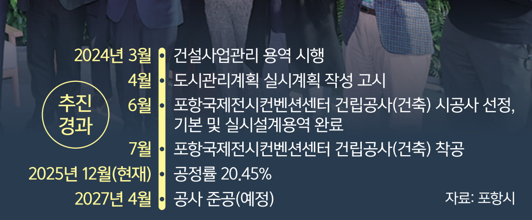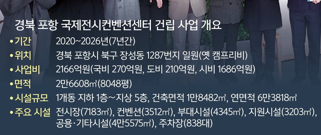 이러한 흐름에 발맞춰 시는 2027년 개관 예정인 포항국제전시컨벤션센터(POEX·포엑스)를 마이스 허브이자 새로운 도시 전략의 중심축으로 삼을 계획이다. 포엑스는 북구 장성동 옛 미군기지 ‘캠프 리비’ 부지에 지하 1층∼지상 5층, 총 연면적 6만3818㎡에 전시장과 컨벤션홀 등을 갖춘 1단계를 우선 조성한다. 시는 포엑스를 단순한 전시장이나 회의장이 아니라 세계와 포항을 연결하는 ‘미래 교류의 플랫폼’으로 육성한다는 구상이다. 또한 포엑스 1단계 개관에 이어 비슷한 규모의 2단계 확장을 도시 미래 경쟁력 확보를 위한 핵심 사업으로 적극 추진하고 있다.