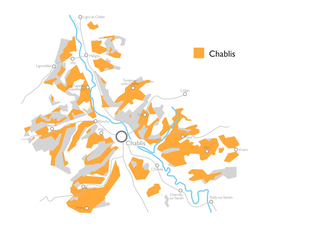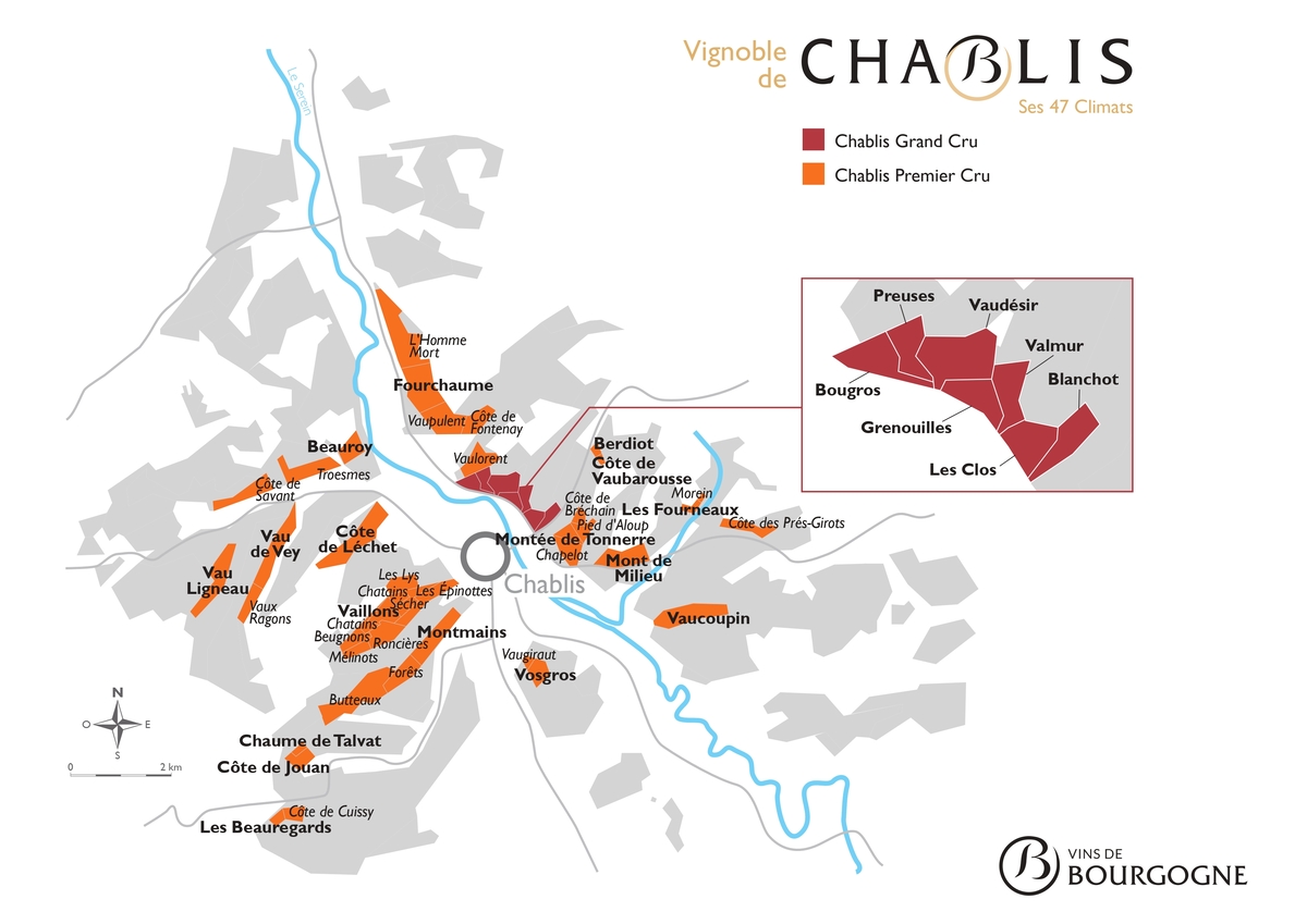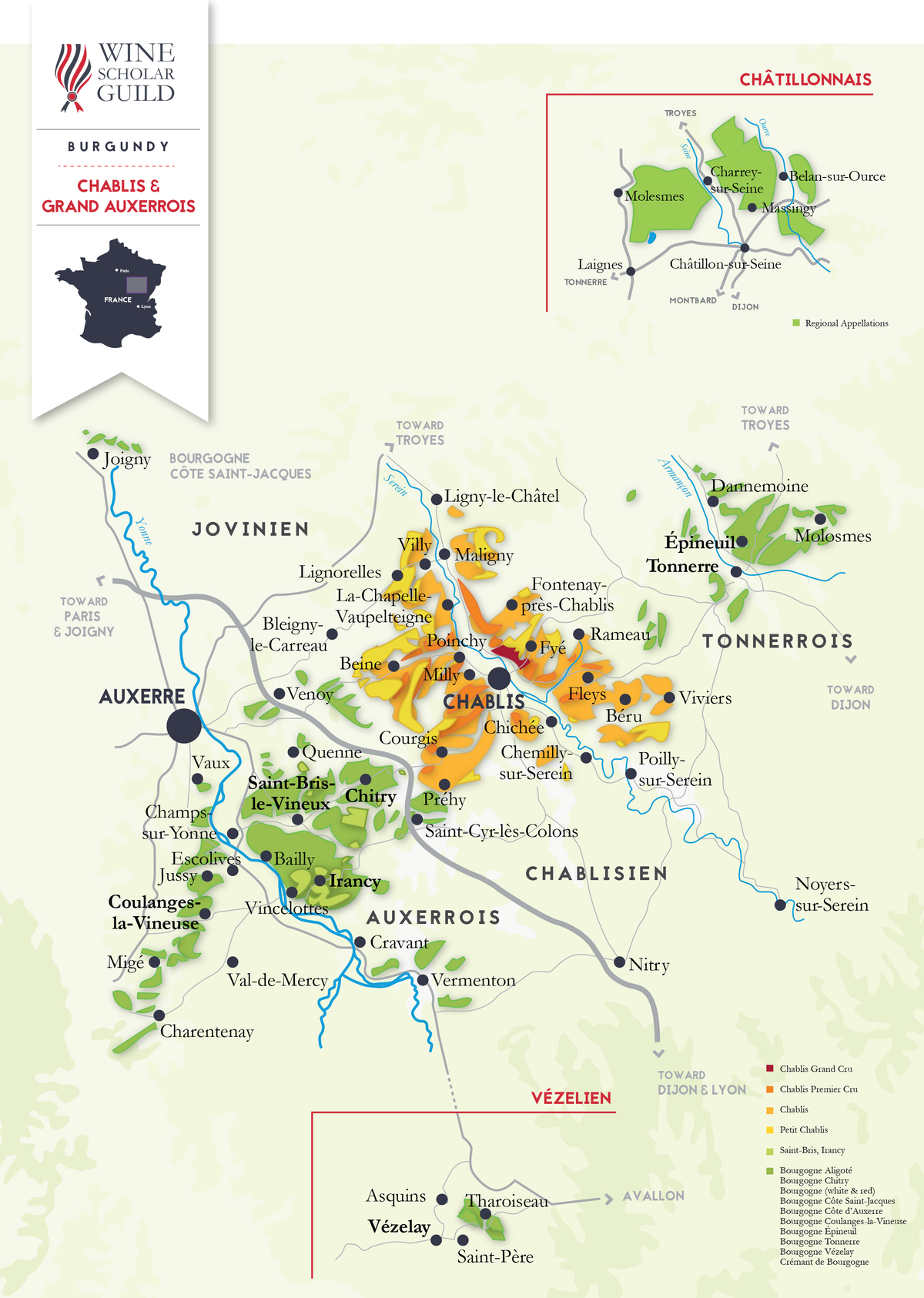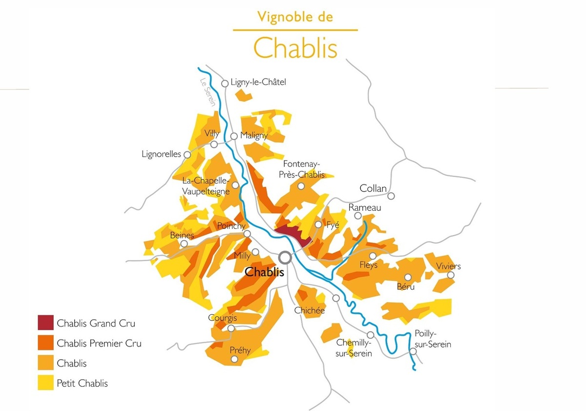 샤블리 마을 4개 AOC 위치. 부르고뉴와인협회