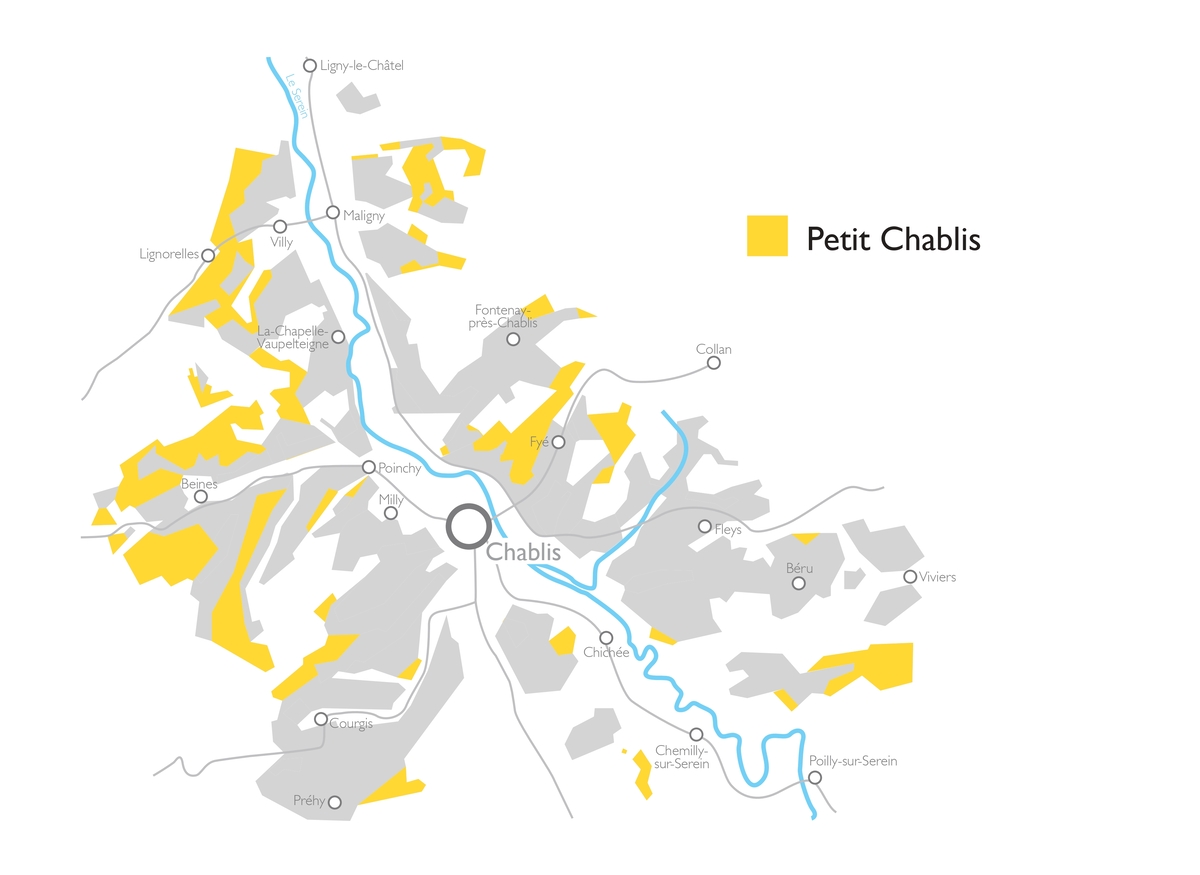 샤블리 전체 AOC. 샤블리와인협회 ◆샤블리 AOC 쁘띠 샤블리와 일반 샤블리는 등급의 차이가 아니라 스타일의 차이로 이해하는 것이 적절합니다. 샤블리는 동서 약 18km, 남북 약 16km에 불과한 매우 작은 산지이지만, 세렝 강을 중심으로 좌안과 우안에 수많은 작은 계곡과 지류가 분포해 와인마다 다양한 스타일을 보여줍니다.