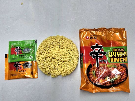 26일 농심의 한정판 제품 '신라면 김치볶음면'을 직접 조리해 시식했다. 농심이 신라면에서 국물을 과감히 덜어내고, 김치볶음이라는 한국적인 맛을 전면에 내세운 제품이다. 이 제품은 지난달 24일부터 이마트 단독으로 판매 중이다.