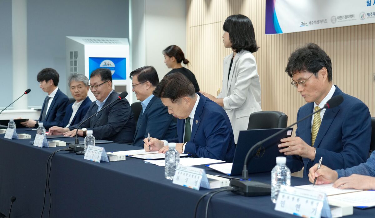9일 제주도청에서 열린 ‘제주형 건강주치의 시범사업’ 업무협약. 제주도 제공 협약으로 유관기관 간 협력과 역할 분담을 통해 도민들에게 지속적이고 포괄적인 건강관리 서비스를 제공하기 위한 기반을 마련했다. 협약을 통해 각 기관은 전문성을 살려 지역사회 중심의 의료 서비스 체계를 구축하는 데 힘을 모으기로 했다.
