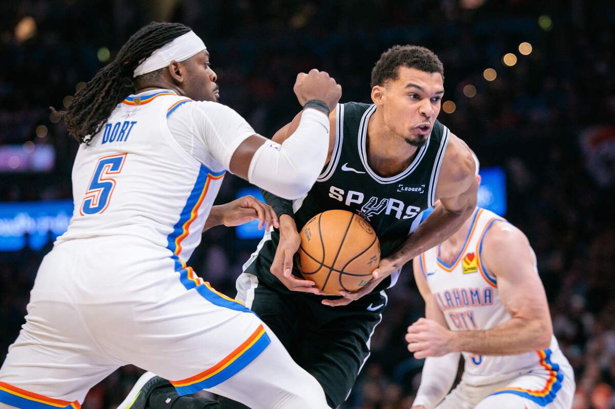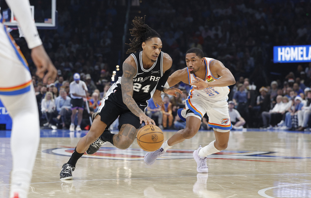 샌안토니오의 백코트 에이스 디애런 팍스가 팀내 최다인 29점(야투 12/19) 4리바운드 3어시스트로 팀 공격을 이끌었다. 2년차 가드 스테판 캐슬이 19점 7어시스트, 베테랑 포워드 해리슨 반즈가 15점 6리바운드로 뒤를 받쳤다. 부상 복귀 이후 벤치에서 출격하고 있는 웸반야마는 25분만을 뛰면서 19점 11리바운드 2어시스트 1스틸 1블록슛으로 더블 더블을 기록했다. 오클라호마시티의 승리 방정식이 SGA가 나서는 주전 구간에서 상대를 압도한 뒤 양질의 벤치 자원들이 나서는 벤치 구간에서 상대를 끝내버리는 것이었지만, 웸반야마가 벤치 구간에서 출격해 상대 벤치들을 쓸어버린 덕에 오클라호마시티 특유의 승리공식이 구현될 수 없었다. 이날 웸반야마의 코트 마진은 +13이었다.