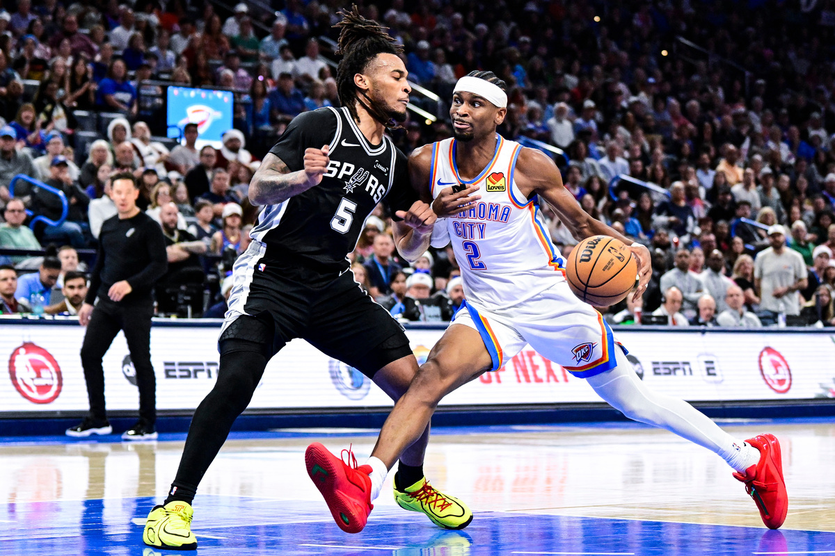 MVP 2연패를 노리는 SGA는 이날 22점을 올리긴 했지만, 19개의 슛을 던져 7개만 넣는 등 야투율이 저조했다. 6리바운드 4어시스트도 곁들이긴 했지만, 샌안토니오를 무너뜨리기엔 역부족이었다. 이날 SGA의 코트마진은 ?15로 오클라호마시티 내에서 최저였다. 주전 중에선 그나마 2옵션 제일런 윌리엄스가 12점 6어시스트를 올리며 코트 마진이 +4였다. 빅맨 듀오 아이제이아 하르텐슈타인이 13점 12리바운드, 쳇 홈그렌이 10점 12리바운드 더블 더블을 작성했지만, 팀 패배를 막기엔 역부족이었다. 남정훈 기자 che@segye.com
