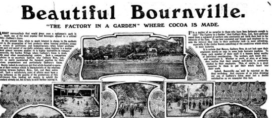 존 캐드버리의 뜻은 그의 아들이자 2대 공동 사장인 조지·리처드 캐드버리에게 이어졌다. 조지는 1878년 버밍엄 도심에서 4㎞ 떨어진 외딴 땅을 사들여 커다란 초콜릿 공장을 짓고, 공장 옆에 노동자 숙소로 쓰일 건물 16채를 세웠다. 이 숙소가 본빌의 시작이다.