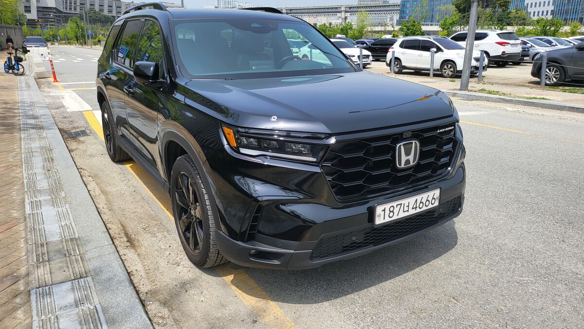 파일럿은 숫자부터 대형이다. 전장 5090㎜, 전폭 1995㎜, 전고 1805㎜, 휠베이스 2890㎜의 차체는 글로벌 대형 SUV들과 나란히 세워도 전혀 밀리지 않는다. 서울 도심 골목에서는 분명 ‘큰 차’로 느껴지지만, 블랙 컬러가 이 덩치를 적당히 다이어트해 준다. 과시보다 중후함에 가까운 인상이다. 크리스털 블랙 펄 바디와 블랙 전용 휠, 블랙 포인트가 더해진 외관은 ‘SUV가 이 정도 존재감은 있어야지’라는 말을 자연스럽게 떠올리게 만든다.