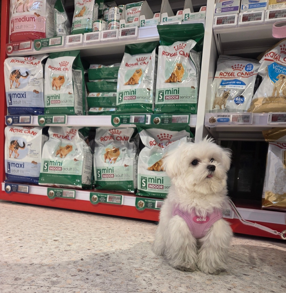 이날 파주에서 1시간은 달려 몰티즈 반려견 ‘봄이’와 함께 로얄캐닌 브랜드숍을 방문한 보호자는 “봄이가 곧 생후 11개월이 되는데 원래 급여하는 사료가 생후 2~10개월 자견용이라서 성견용 제품을 사러 왔다”고 했다.