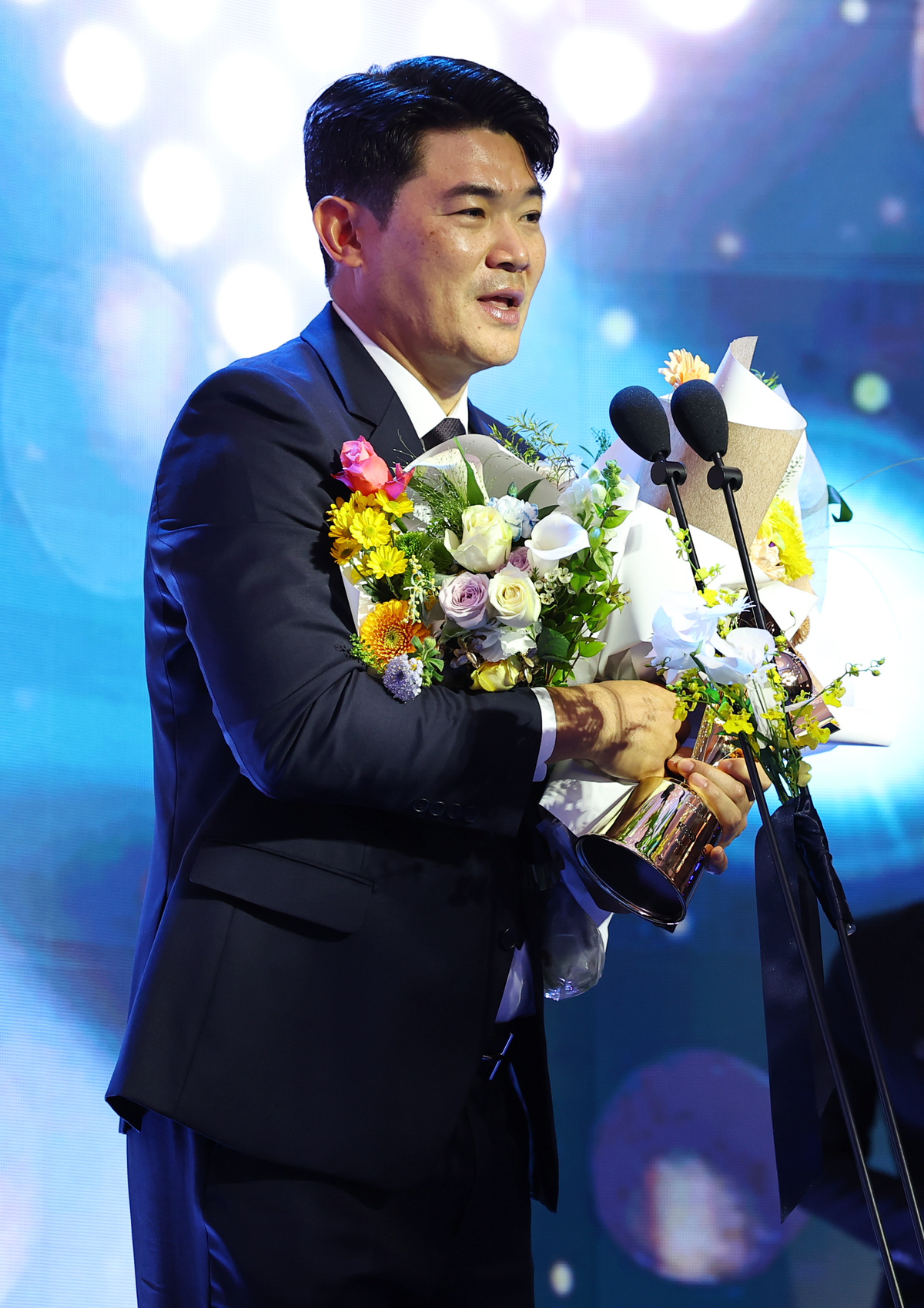 SSG 노경은이 지난해 11월 열린 2025 KBO리그 시상식에서 투수부문 홀드상을 수상하고 소감을 전하고 있다. 사진=뉴시스 ‘불혹의 홀드왕’ 노경은이 바통을 받는다. 1984년생의 그는 사이판 캠프 소집 명단 중 최고령이다. 기량은 누구에게도 뒤지지 않는다. 지난해 77경기에 등판해 35홀드를 건졌다. 2024년 38홀드에 이은 2년 연속 홀드 1위다. 꾸준한 자기관리와 성실한 워크에식이 젊은 투수진에게 큰 울림을 줄 수 있다고 모두가 입을 모은다.