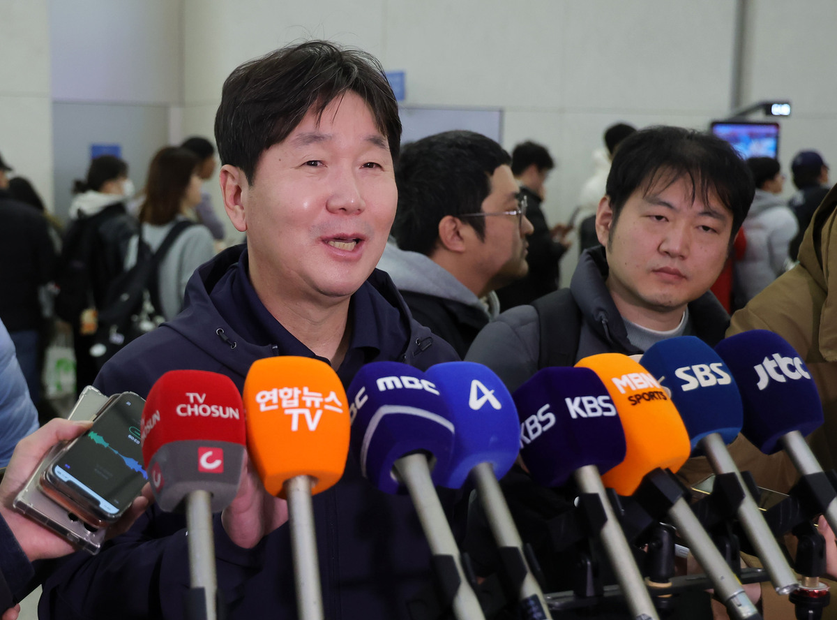 류지현 야구 국가대표팀 감독이 9일 인천국제공항 제1여객터미널에서 월드베이스볼클래식(WBC) 대비 1차 전지훈련을 위해 사이판으로 출국하기 전 취재진의 질문에 답하고 있다. 뉴스1 류지현 감독이 이끄는 한국 야구대표팀은 9일 인천국제공항을 통해 월드베이스볼클래식(WBC) 1차 캠프가 열리는 북마리아나 제도 사이판으로 떠났다.