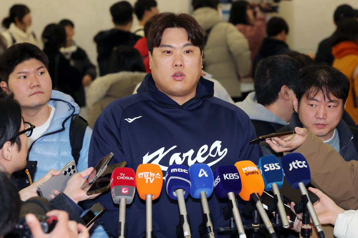 류지현 대한민국 야구국가대표팀 감독이 9일 미국령 사이판에서 열리는 2026 월드베이스볼클래식(WBC) 1차 캠프 전지훈련에 참가하기 위해 인천국제공항 제1터미널에서 인터뷰하고 있다. 뉴시스 대한민국 야구국가대표팀 류현진, 김혜성, 고우석, 문동주 등이 9일 미국령 사이판에서 열리는 2026 월드베이스볼클래식(WBC) 1차 캠프 전지훈련에 참가하기 위해 인천국제공항 제1터미널에 도착하고 있다. 뉴시스 류지현 감독은 출국 수속을 마친 뒤 취재진과 만나 “어제 선수단과 상견례를 했는데, 선수들의 밝은 표정을 보니 이번 대회가 굉장히 긍정적으로 흘러갈 것 같다는느낌을 받았다”고 소감을 밝혔다.