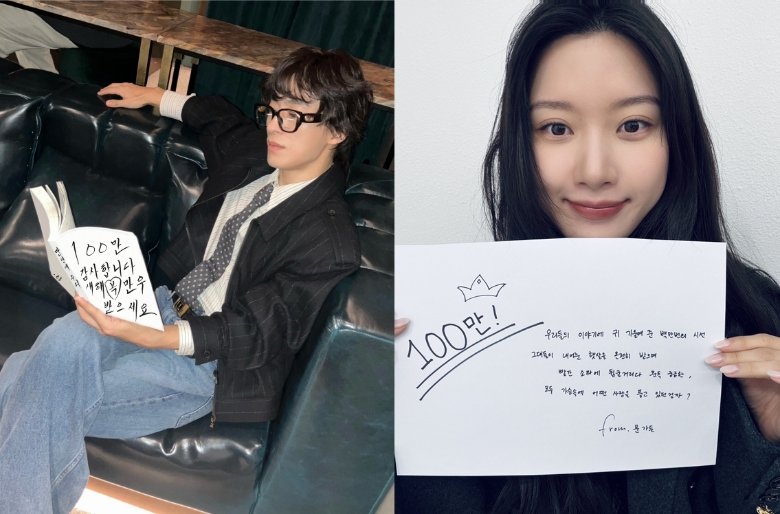 배우 구교환(왼쪽), 문가영 100만 돌파 감사 인사. 쇼박스 제공