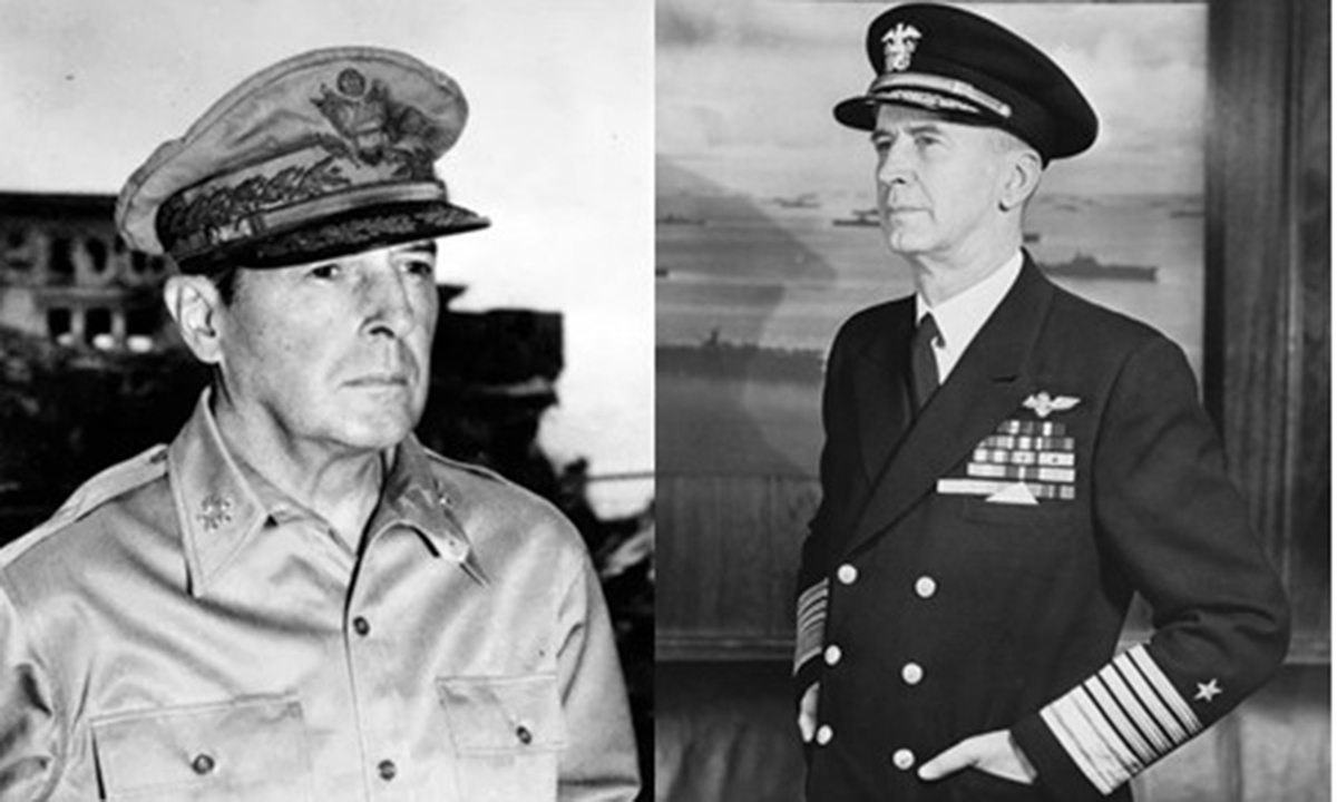 태평양전쟁 당시 남서태평양지역군 사령관 맥아더 원수(왼쪽)와 해군참모총장 킹 원수(오른쪽) 태평양전쟁 초기 ‘선 독일(후 일본)’이라는 연합군의 대전략 원칙 아래에서, 태평양 전선에서 일본에 비해 열세에 놓인 미국에 합리적인 선택은 가용 자산을 보존한 채 방어에 집중하는 것이었다. 그러나 킹은 이러한 현실 속에서도 항공모함을 지켜야 할 대상으로 보기보다, 지금 사용하지 않으면 의미가 없는 수단으로 인식하며 도쿄 폭격을 승인하고 밀어붙였다. 미 항공모함이 일본 본토 인근까지 접근해 실시한 두리틀 공습은 실제로 일본에 의미 있는 피해는 입히지 못했다. 그럼에도 수도 도쿄가 폭격될 수 있다는 사실은 일본 지휘부에 심리적 충격을 주었고, 본토 방위에 대한 조급함을 불러왔다. 이 조급함이 결국 미드웨이 해전이라는 결정적 국면으로 이어지며, 전략적 차원에서 미군에게 운으로 작용했다.