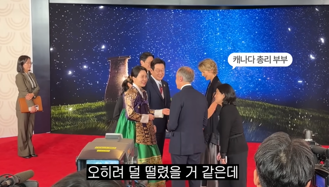 노홍철 유튜브 채널 '노홍철' 캡처. APEC 행사 현장에 도착한 노홍철은 경호인단과 행사장 주변 곳곳을 둘러보며 경호 담당과 관련해 지켜야할 수칙들을 익히는 등 현장 점검에 나섰다. 이후 노홍철은 대기하던 중 만찬장에 도착한 이재명 대통령과 김혜경 영부인을 먼발치에서 보게되고 "누가 나한테 뭐라고 한 것도 아닌데 괜히 긴장이 되고 막 떨린다"며 "뉴스에서 볼 때랑 다르게 엄청 긴장된다. 여기서 보는 것만으로도 이 기운이...이야 이분들 와..."라며 긴장한 표정과 놀란 기색이 역력한 모습을 보였다.
