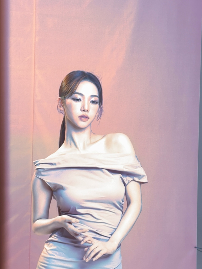 또 다른 사진에서는 어깨와 쇄골 라인이 훤히 드러나는 오프숄더 드레스를 착용해 가녀리면서도 탄탄한 상체 라인을 강조했다. 비하인드 컷임에도 불구하고 보정이 필요 없는 독보적인 비율과 입체적인 몸매 라인이 돋보였다.