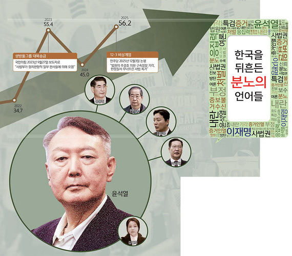 양당이 사법을 정치적 장으로 끌어들이는 ‘사법의 정치화’가 일어난다는 것이다. 그러면서 “특히 2025년 분노 중심의 정서가 크게 형성된 점에 주목해야 한다”며 “(분노가) 정치적 운동을 일으키는 자원을 동원한다는 측면에서는 유리하지만, 절차적 숙의 공간을 축소할 수 있다”고 밝혔다.