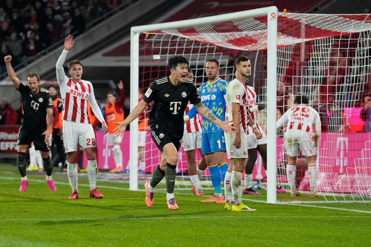 바이에른 뮌헨의 김민재가 15일 독일 쾰른의 라인에네르기 슈타디온에서 열린 FC쾰른과의 분데스리가 맞대결에서 시즌 1호골을 터뜨린 후 포효하고 있다. 사진=AP/뉴시스