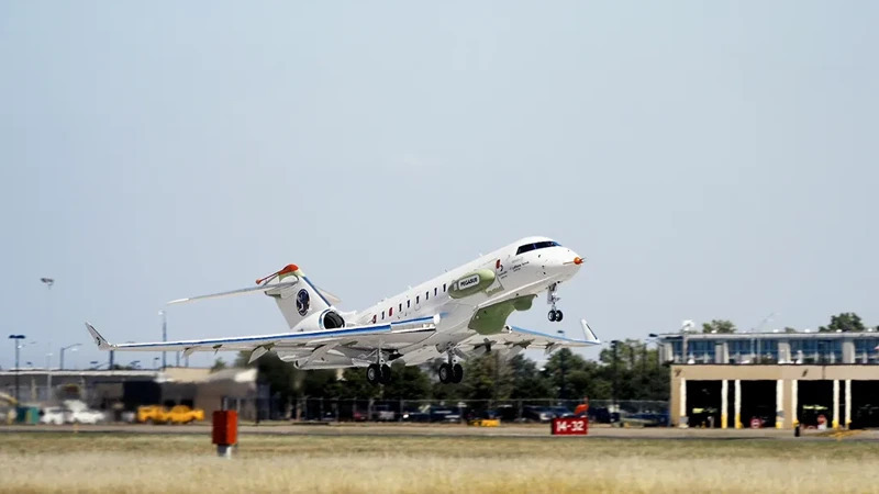 미 공군이 운용하는 EC-37B 전자전기가 기술 검증을 위한 시험비행을 앞두고 활주로에서 이동하고 있다. 미 공군 제공 약 1조8000억원을 투입해 중형 비즈니스 여객기인 캐나다 봄바르디어 G6500를 개조, 국산 전자전 관련 임무장비를 탑재하는 방식으로 개발이 진행된다. 미 공군에서 쓰이고 있는 최신 전자전기인 EA-37B과 동일한 개념이다. 2대를 확보한 뒤 인공지능(AI) 등을 적용해 성능을 높인 블록-Ⅱ 2대를 추가 도입할 예정이다.