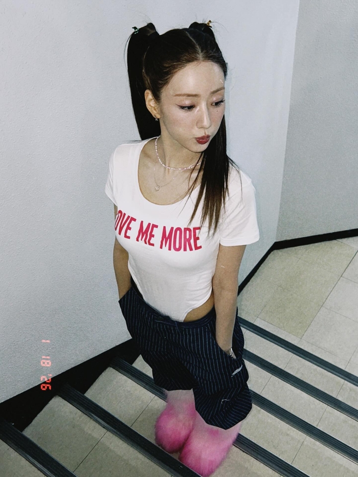 윤보미는 지난 19일 자신의 SNS를 통해 여러 장의 사진을 게재하며 활동 종료를 알렸다. 공개된 사진 속 윤보미는 LOVE ME MORE라는 문구가 새겨진 화이트 크롭 탑에 스트라이프 패턴의 팬츠를 매치해 스포티하면서도 발랄한 분위기를 연출했다. 특히 무릎까지 올라오는 화려한 분홍색 털 부츠는 그의 유니크한 패션 감각을 여실히 보여주며 시선을 사로잡았다.
