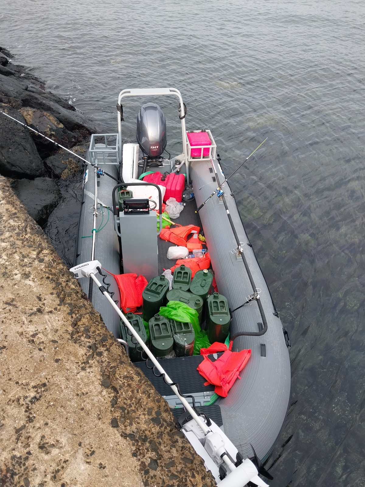 제주시 한경명 용수리 해안서 발견된 보트. 독자 제공 B씨는 이날 오후 5시 50분쯤 제주시 용담동의 공원 주차장에서 해경에 긴급 체포됐다. 이들은 지난 7일 오후 중국 남동부 장쑤성 난퉁시에서 다른 중국인과 함께 90마력 엔진과 위성항법장치(GPS)가 달린 고무보트를 타고 8일 새벽 제주시 한경면 용수리 해안을 통해 밀입국한 혐의를 받는다. 이들은 직선으로 약 460㎞ 떨어진 거리를 보트로 이동했다.