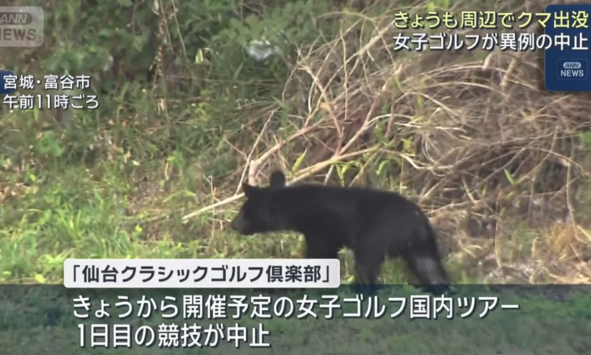 지난 7월27일 일본 홋카이도 라우스초에서 곰이 사슴을 덮치는 장면이 포착되고 있다. NNN 방송화면 캡처 #2. 나흘 뒤인 7월16일엔 미야기현 도미야시 센다이클래식골프클럽에서 진행 중이던 프로암 경기가 중단됐다. 오전 10시20분쯤 “1번 홀 시작 지점 근처 숲에 새끼 곰이 있다”는 신고 때문이다. 일본 여자프로골프협회(JLPGA)는 다음날 예정했던 메이지 야스다 레이디스 골프 토너먼트 1라운드 경기도 취소하고 18일부터 무관중으로 대회를 치렀다. 이에 앞서 5월 이시카와현 고마쓰시에서 열린 JLPGA 하부 투어도 곰 때문에 대회가 중지됐다. 곰 출현이 잇따르자 일부 골프장은 홈페이지에 “발자국, 배설물 등 곰 흔적을 발견하면 접근하거나 큰소리를 지르지 말고 신속하게 직원에게 연락하라”, “음식물이나 달콤한 냄새가 나는 것을 카트 등에 방치하지 말라”는 공지를 올렸다.