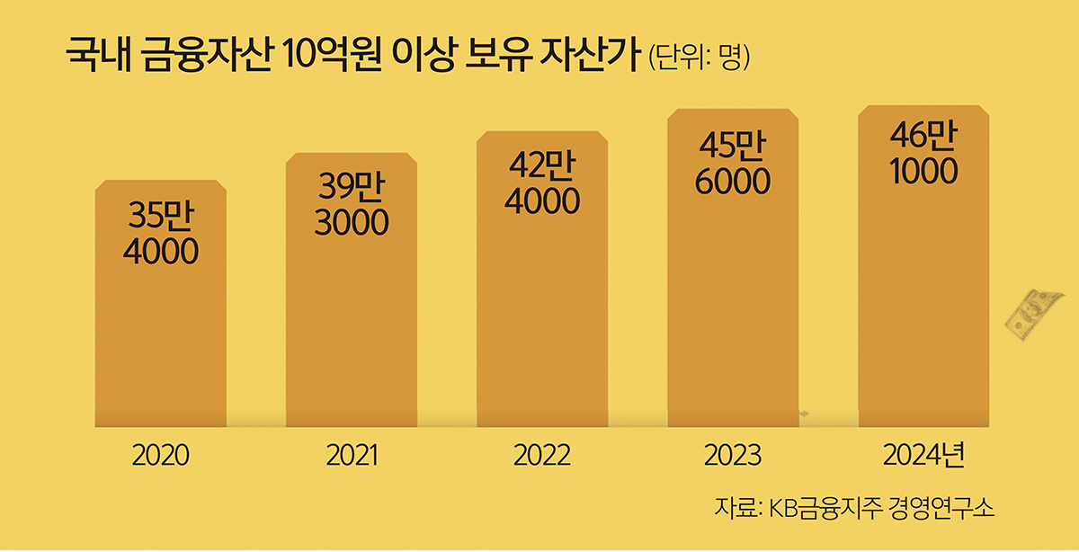 최근 국내에서 초고액 자산가가 늘어나면서 패밀리 오피스를 찾는 이들은 더 늘어날 전망이다. KB경영연구소가 발간한 ‘2024 한국 부자 보고서’에 따르면 지난해 금융자산 10억~100억원 미만을 보유한 자산가는 42만1800명으로 2023년 대비 5900명 증가했는데, 300억원 이상인 ‘초고액 자산가’는 1500명 늘어 1만100명을 돌파했다.