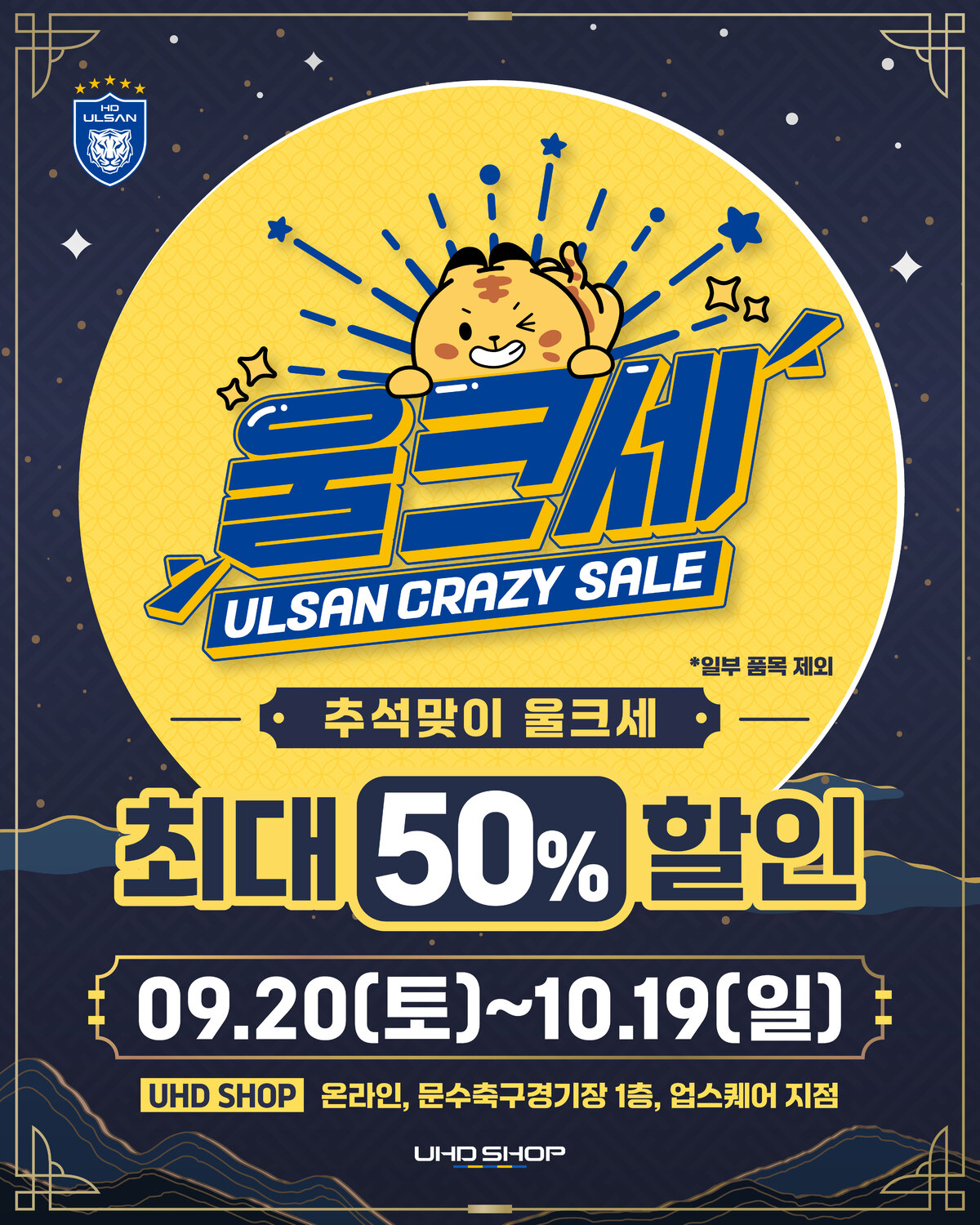 사진=울산 HD 제공 프로축구 K리그1 울산 HD가 추석을 풍요롭게 할 채비를 마쳤다. 굿즈 특별 할인과 신규 유니폼 출시에 나섰다. 울산은 “이번 달 20일부터 내달 19일까지 구단 상품 할인행사를 진행한다”고 16일 전했다. ‘추석 맞이 울.크.세(울산 크레이지 세일)’이라는 이름으로 팬들에게 다양한 구매 혜택을 제공한다.