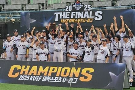 한일장신대 야구부가 2025 KUSF 대학야구 U-리그 왕중왕전에서 연세대를 꺾고 우승을 차지한 뒤 환호하고 있다. 한일장신대 제공 이번 우승으로 한일장신대는 최우수선수상(김호범), 우수투수상(이건승), 타격상(최윤호), 감독상(이선우 감독) 등 주요 개인상까지 휩쓸었다. 이선우 감독은 “선수들의 끈끈한 집중력이 승리의 원동력이었다”며 “다가오는 전국체전에서도 좋은 성적을 거둬 학교와 전북 체육의 명예를 드높일 것”이라고 포부를 밝혔다.
