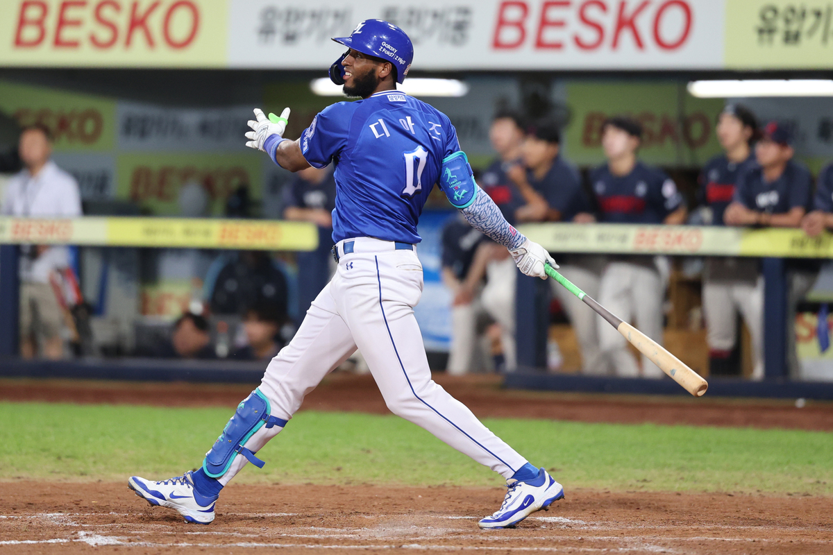 이날 시즌 47호 홈런포를 쏘아올린 디아즈는 2015년 테임즈(NC), 2020년 로하스(KT)와 함께 외국인 타자 단일 시즌 홈런 공동 2위에 올랐다. 이제 디아즈 앞에 남은 선수는 2015년 삼성에서 뛰던 야마이코 나바로가 기록한 48홈런이다. 디아즈는 이날 4타점을 올려 시즌 139타점으로 2015년 에릭 테임즈가 달성한 외국인 선수 한 시즌 최다 타점(140타점) 기록 경신도 눈앞에 뒀다. 남정훈 기자 che@segye.com