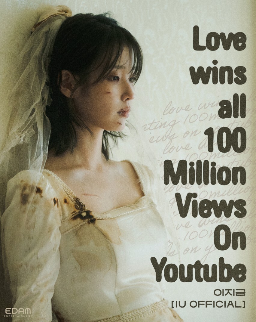 아이유의 'Love wins all' 뮤직비디오가 유튜브 조회수 1억 뷰를 돌파했다. EDAM엔터테인먼트 제공 ‘Love wins all’은 ‘스물셋’, ‘밤편지’, ‘팔레트’, ‘삐삐’, ‘Blueming’, ‘에잇’, ‘Celebrity’, ‘라일락’에 이어 아이유 통산 9번째 억대 조회 수 뮤직비디오 기록이다. 이번 1억 뷰 돌파로 아이유는 또 하나의 의미 있는 기록을 추가했다. 공개 직후 멜론TOP100·HOT100, 지니, 벅스 등 주요 음원 차트 1위를 석권했으며, 해외에서도 아이튠즈 톱 송 차트 23개 지역에서 1위를 기록했다. 또한 아이유는 같은 해 미국 빌보드의 ‘글로벌 넘버 1 아티스트 시리즈(Global No. 1 Artist Series)’ 한국 대표로 선정됐다.